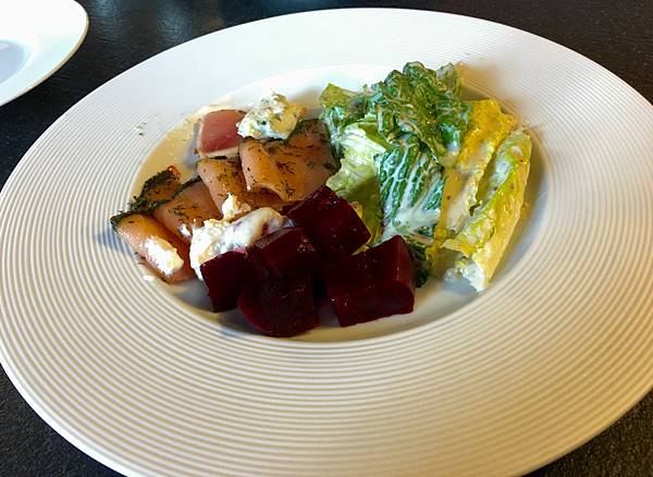 點完餐就可以起身去拿自助沙拉吧的菜色了唷~煙燻鮭魚、甜菜根、凱撒沙拉、藍紋起司....等等,