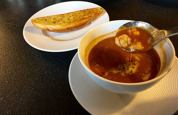 再來 是蝦味超重的龍蝦濃湯,因為一種蝦味,所以有些人喜歡,有些人不喜歡,是很見仁見智的味道~